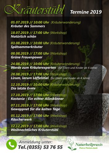 Lebewesen auf dieser Welt schwelgt so im Nahrungsüberfluss wie wir. Und auch wir Menschen mussten in der Geschichte durchaus die eine oder andere Hungerperiode überstehen. In anderen Gegenden unserer Welt ist dies leider auch heute noch bitterer Alltag. Doch was viele nicht wissen, unser Körper kommt mit diesen magernen Zeiten weit aus besser klar, als mit der Völlerei unserer Ernährung. Im Gegenteil, wer hin und wieder verzichtet, tut seiner Gesundheit Gutes an und kann sich sogar vor den Wohlstandkrankheiten unserer Zeit befreien. Das Fasten nicht kompletter Nahrungsverzicht bedeutet, was da genau in unserem Körper abläuft und welche Formen des Fastens es gibt, davon handelt mein Vortrag am 09.05.2019 ab 17 Uhr , wie immer in meinem Kräuterstübl. Wer sich noch einen Platz sichern möchte, kann sich telefonisch unter der 0355 537655 anmelden. Ich freu mich drauf.